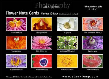12 Colorful Flower Cards. Each vibrant and beautiful card is frameable. This set of colorful and vibrant flower cards were photographed from Botanicals around the US.